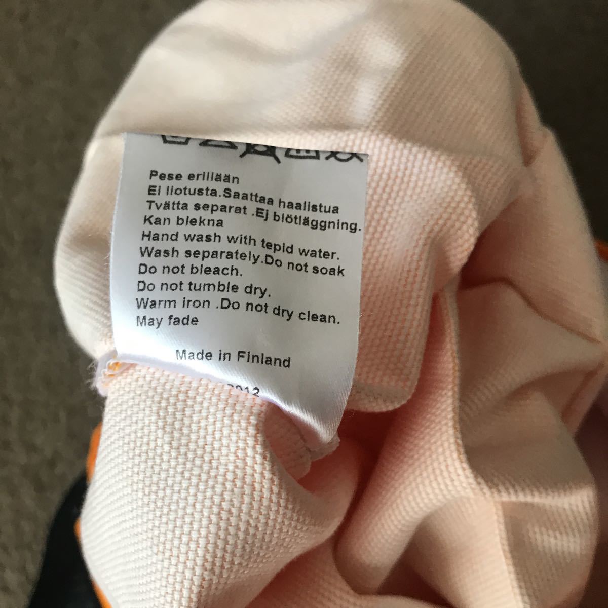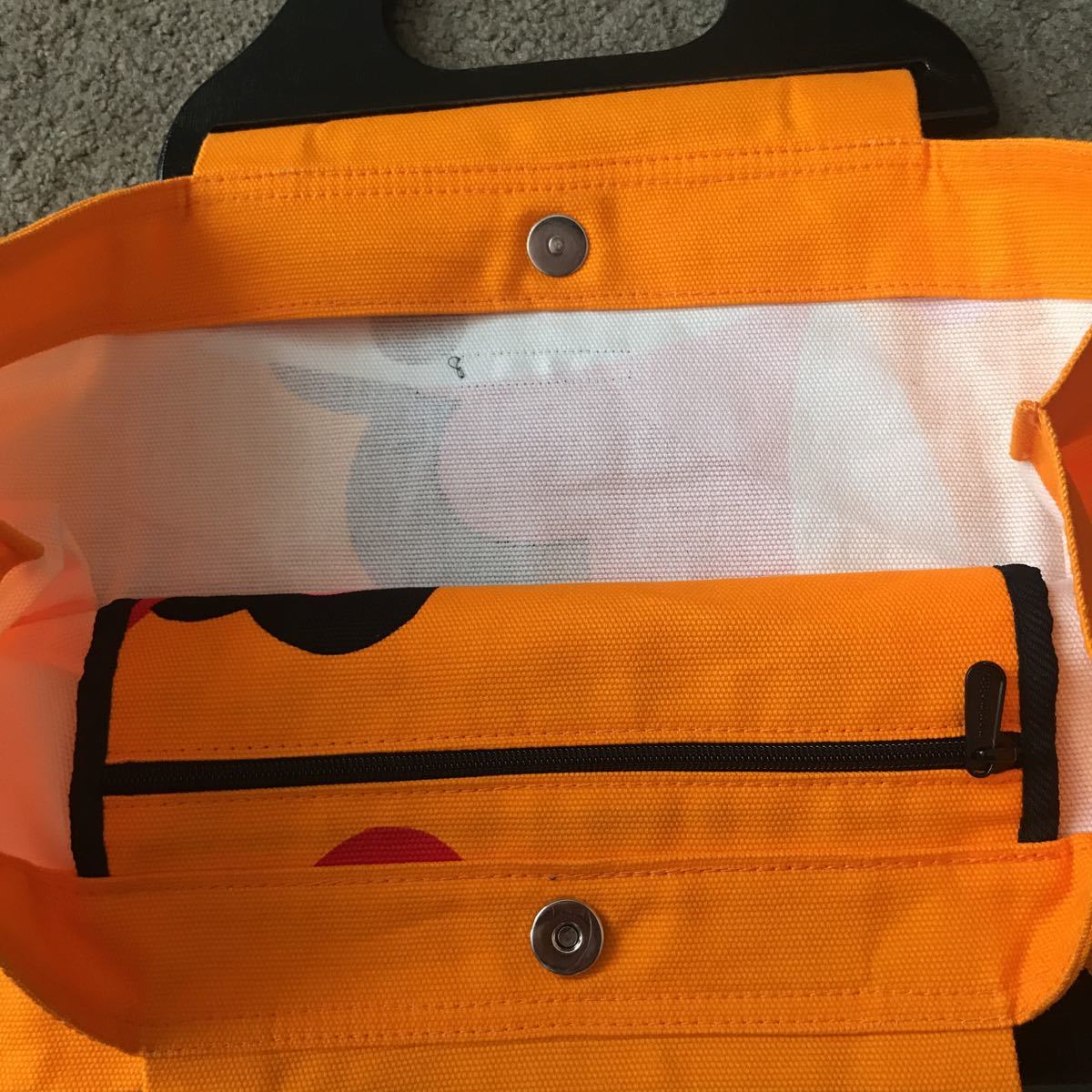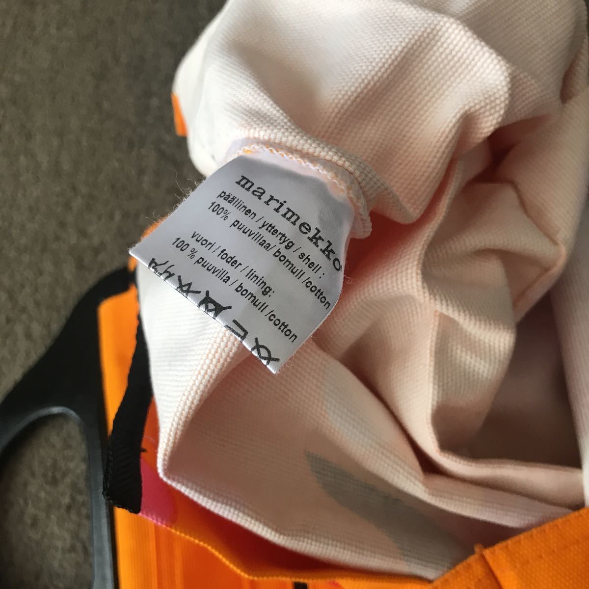 新品 日本限定モデル マリメッコハンドバッグです。フィンランド製、綿100%、持ち手は木製です。実寸は41×32×15cmです。若干の保存汚れはご容赦ください。探していた方、この機会に如何ですか?