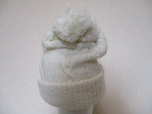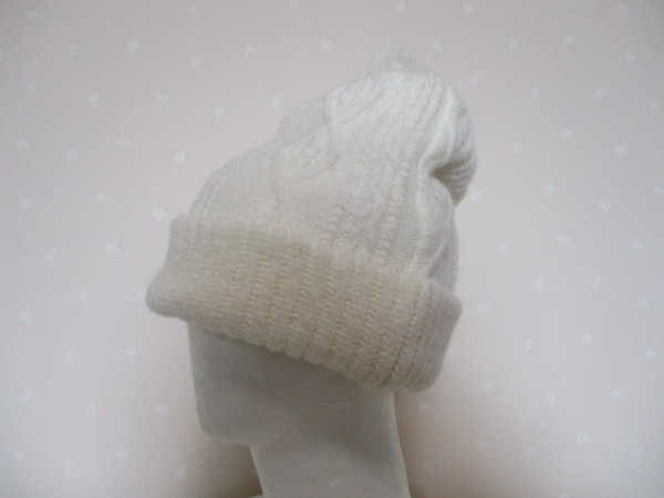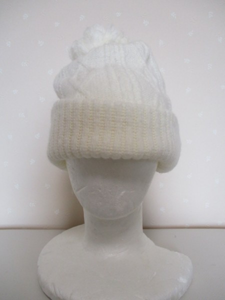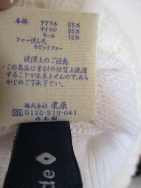 ● 帽子 ● 栗原 ■ ラビットファーポンポン付き帽子 56~58 オフホワイト