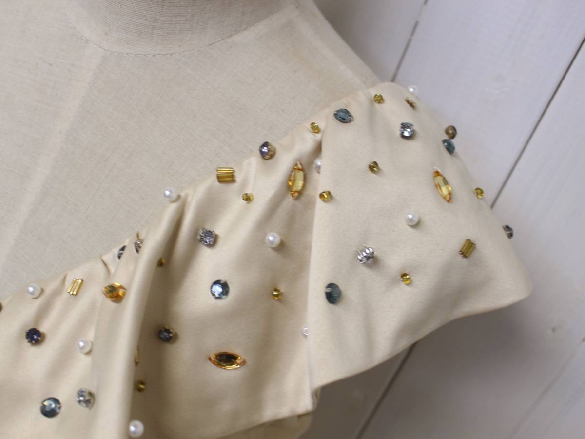 シャーリングのシフォン地に豪華なビジュー装飾がエレガント♪