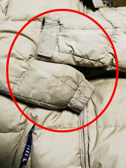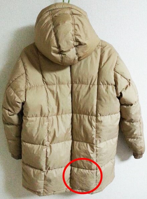 ・袖口に目立つ汚れ、フード、背中スソに薄い汚れがあります。