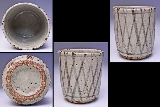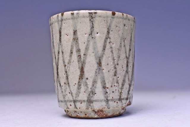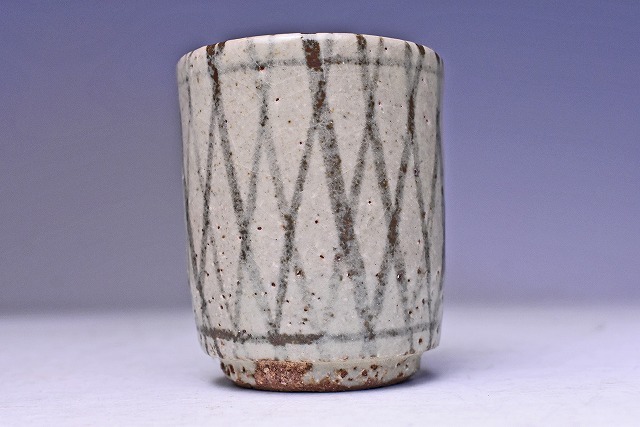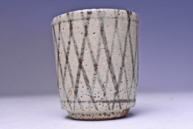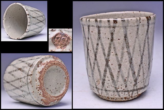 清水卯一 ★ 絵唐津風桧垣文湯呑 ★ 人間国宝 ★ 検 清水保孝 石黒宗麿 原清 ★