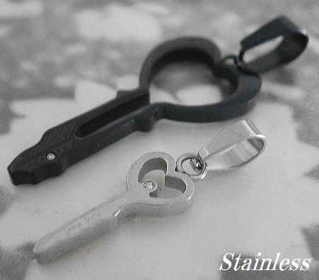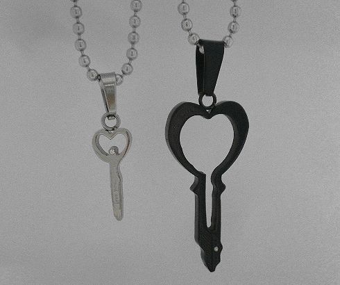 在庫処分★サージカル ステンレス製ジルコニア付Love you印字ブラック ハートキー ペアペンダントset/ステンアクセALL50%OFF