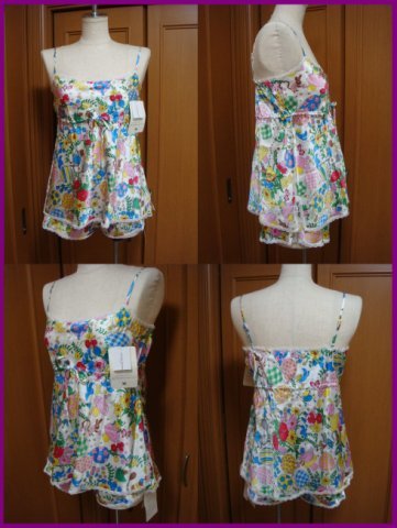 ★ツモリチサト・きのこバルーン柄キャミソール上下セットM★絹