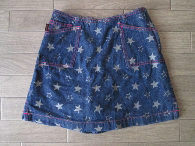 | USED美品★シルバーグリッタースター柄デニムのパンツインスカート 110cm | |||