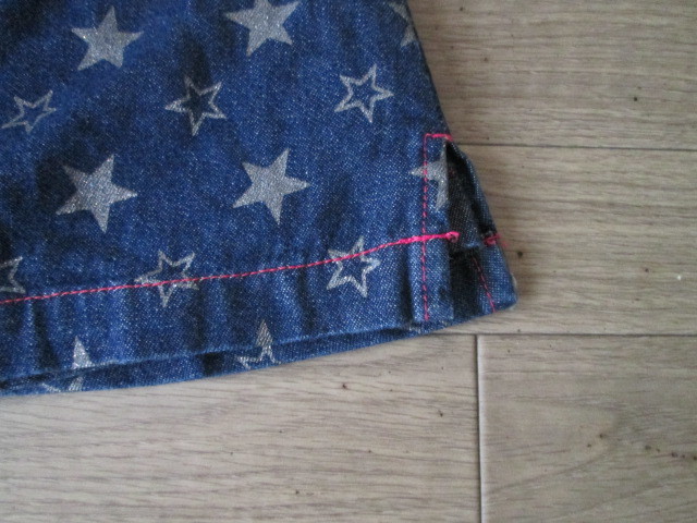 シルバーグリッタースター柄デニムのパンツインスカート 110cmです。 シルバーグリッターの星柄がいい感じのパンツインスカートです。 濃いめのデニムにピンクのステッチが映えてオシャレです。 パンツインスカートなので安心で、両サイドの5,5cmのスリットも入っていて、 動きやすいです。 ポケットは前に3つ付いています。 アジャスター付なので成長に合わせて長く着られます。 シンプルなデザインなので合わせやすく着回しもきいて便利です! 1,2回しか着用していないので状態きれいです。 どなたか活用してくださる方らいらっしゃいましたら是非どうぞ♪ 商品詳細: サイズ: 110cm 総丈: 30cm 股下: 10cm ウエスト平置き(アジャスター付): 26cm 発送料金ですが、ゆうパケットおてがる版230円、レターパックライト430円 または 補償はありませんが定形外で全国一律320円で発送致します。 **注意事項** ※USEDですので、多少の汚れ、キズがある場合がありますのでご理解の上、 ご入札下さい。 ※商品画像は明るさ、光の反射等で実物と多少色合いが変わってみえることがございますが ご理解下さい。 ※素人採寸ですので多少の誤差が生じるかもしれませんがご了承下さい。くださいませ。 ※3日以内に入金が可能な方のみご入札ください NC/NRでお願いします。 ※お振込みの手数料と送料は落札者様の側でご負担をお願いします。 ※送料ですがなるべく一番安い方法で発送させていただきますが、過不足があった場合は 請求も返金も致しませんのでご了承ください。 | |||