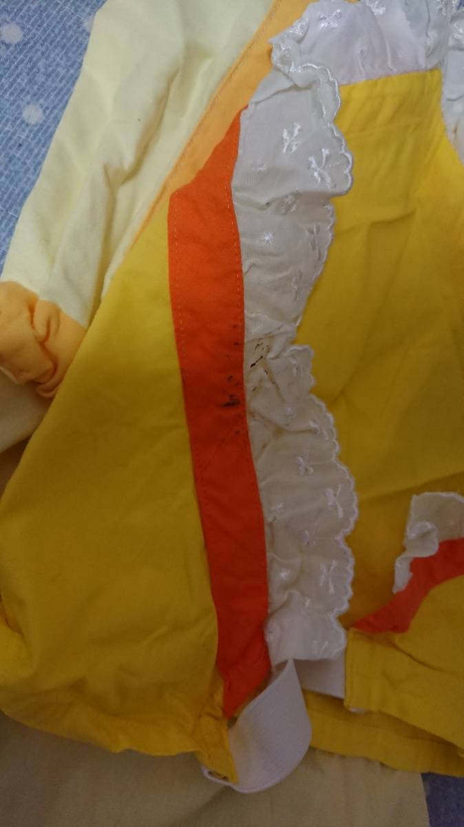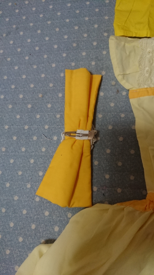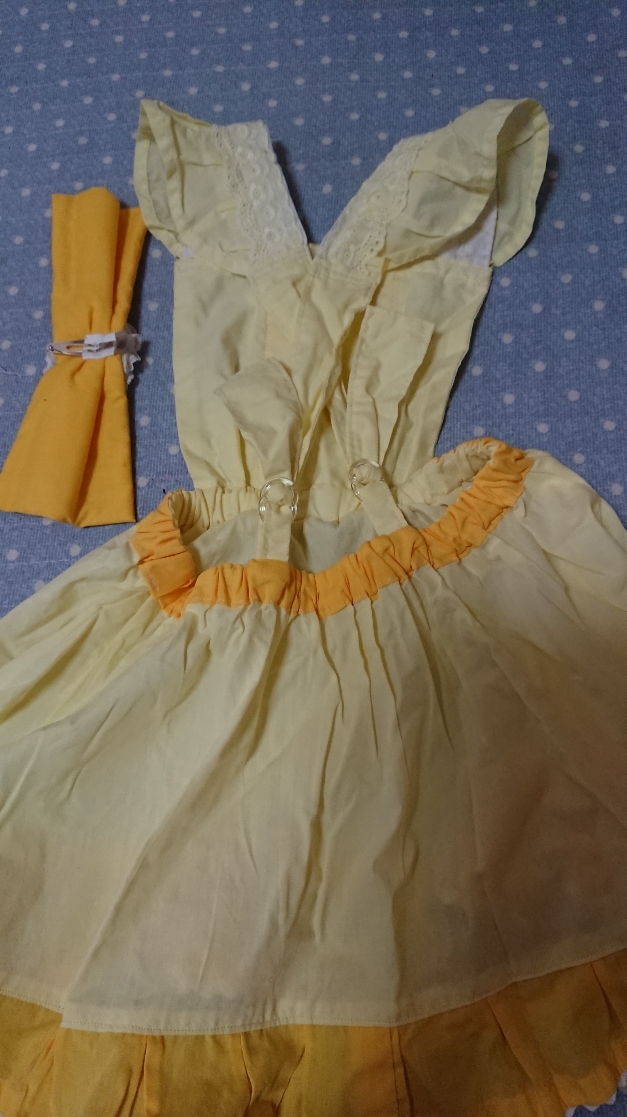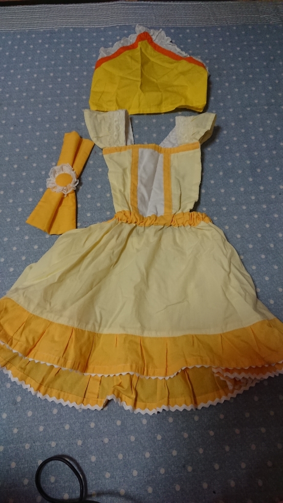 ハンドメイド エプロン 女の子 黄色リボン レースつき 三角巾
