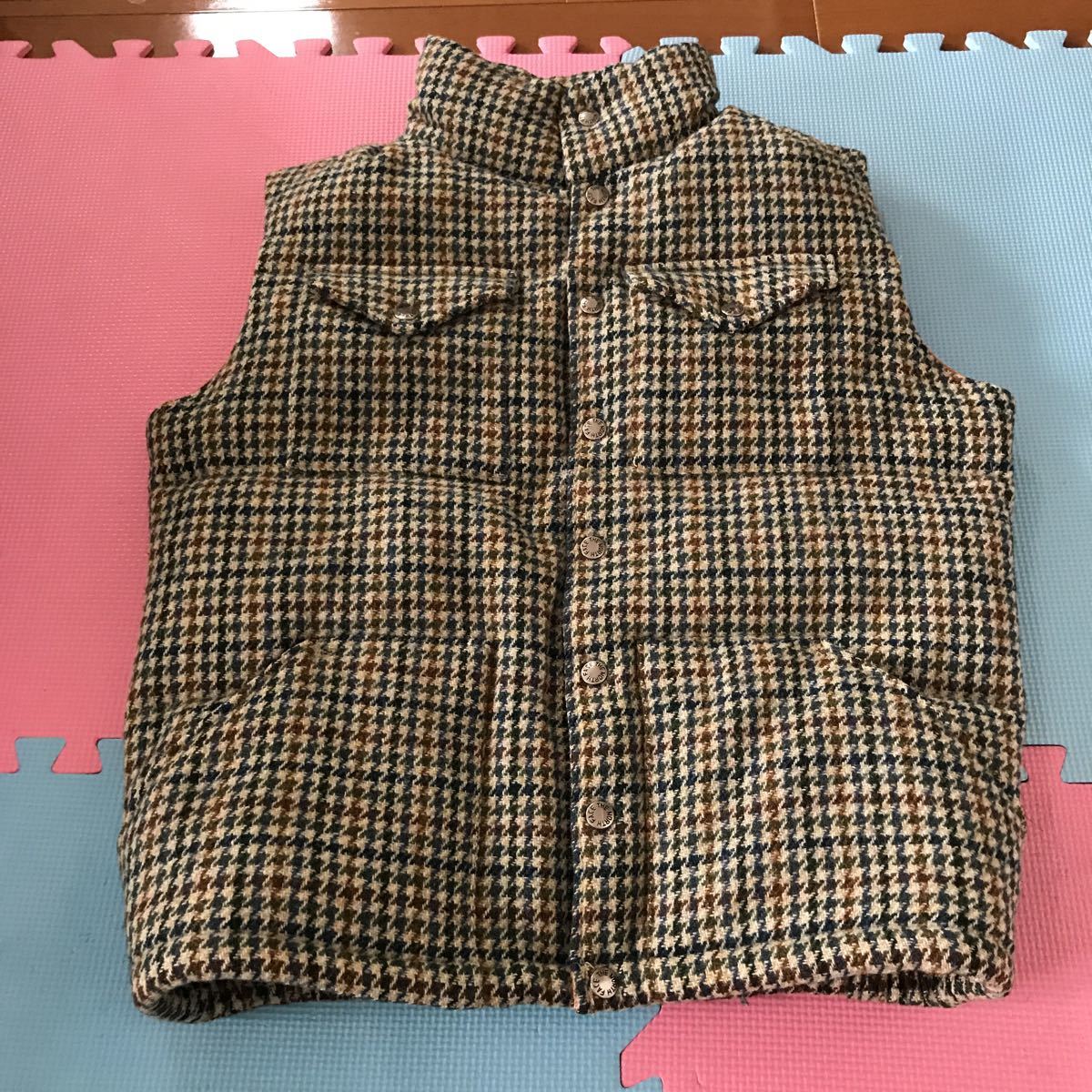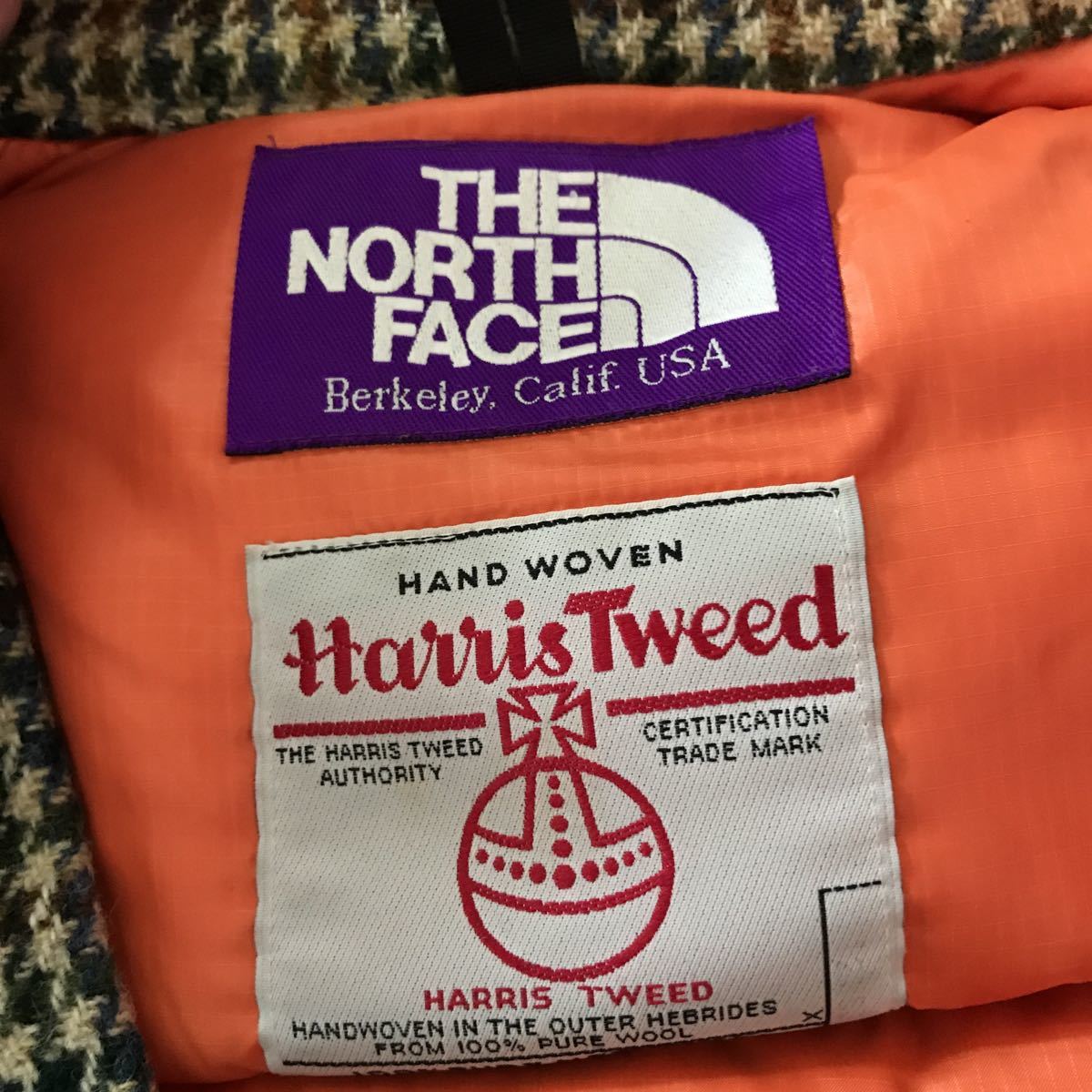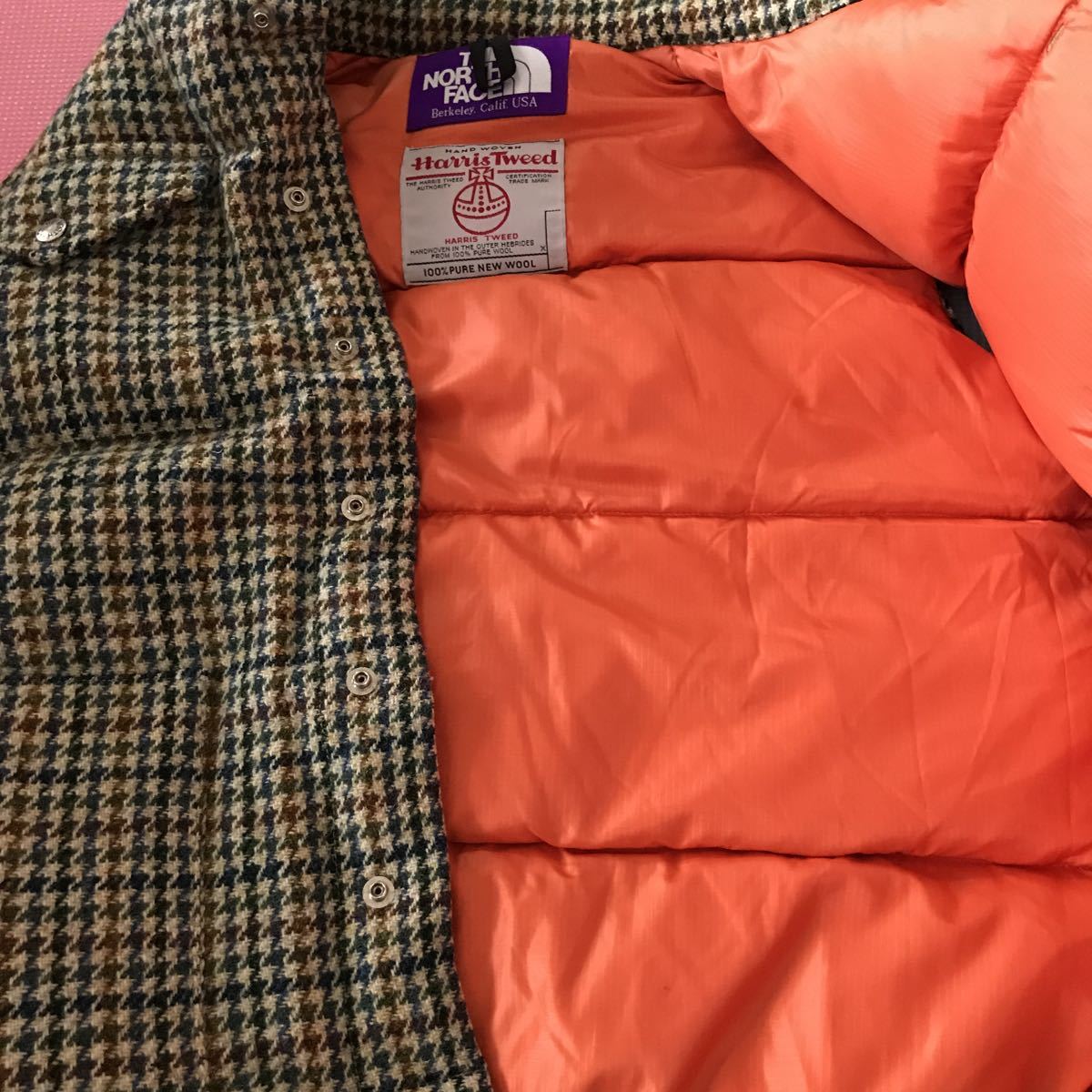 数回着用 ノースフェイスパープルレーベル別注ハリスツィードウールベストです。Sサイズ、ウール100%、ダウン80、フェザー20%です。実寸は肩幅44、身幅56、着丈59cmです。限定完売モデルです。探していた方、この機会に如何ですか。