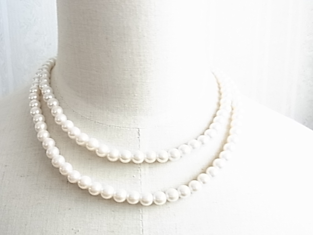イミテーションパール 6~7ミリ玉くらい 2連 パーティーにも素敵な落ち着いた安定感のあるデザイン ネックレス☆