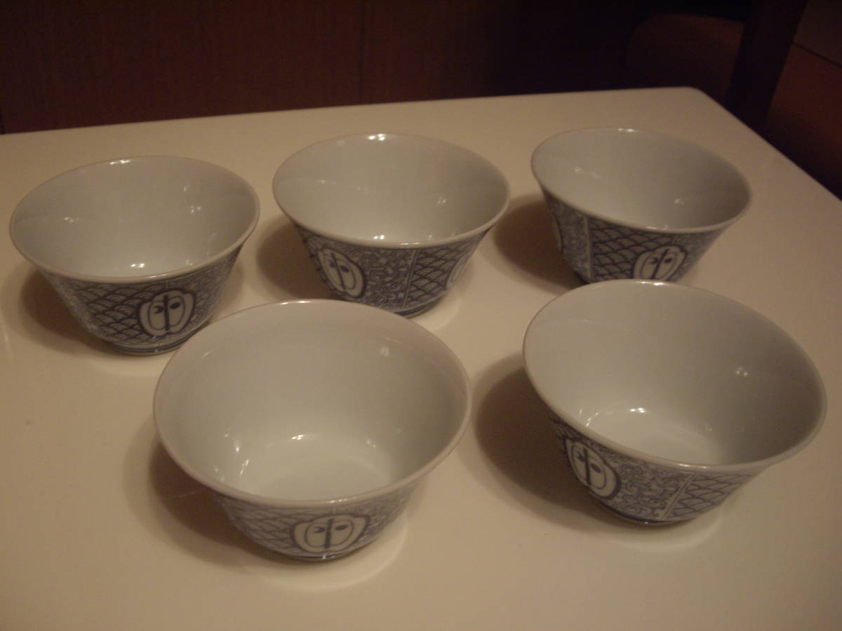 561 新品 未使用 湯飲み 5客セット 和柄 軍配の柄