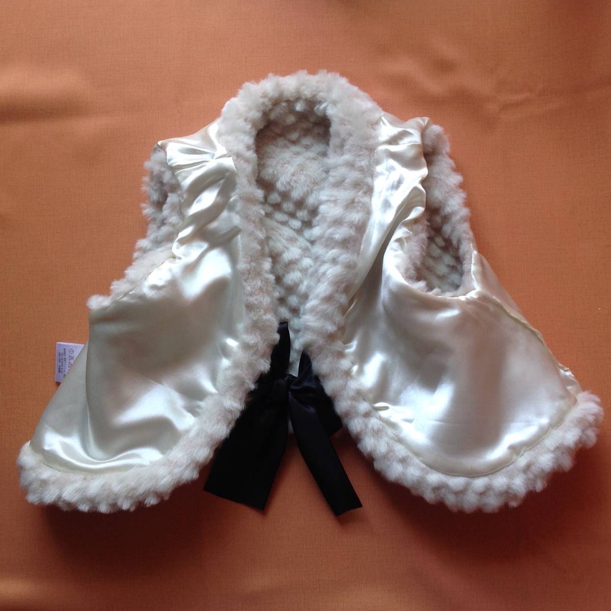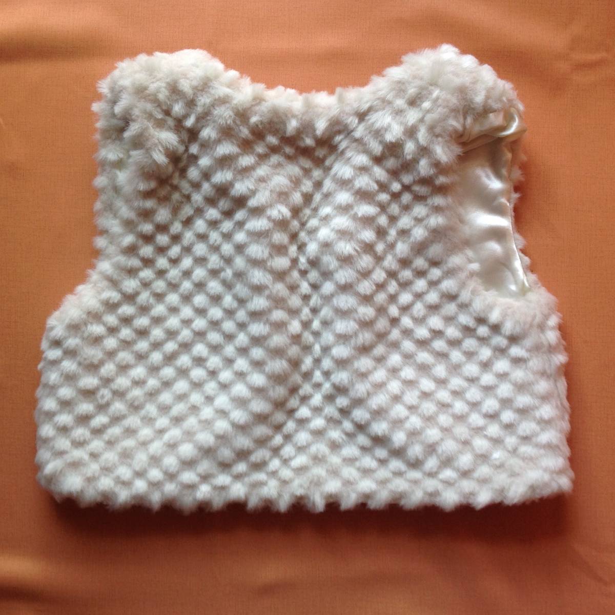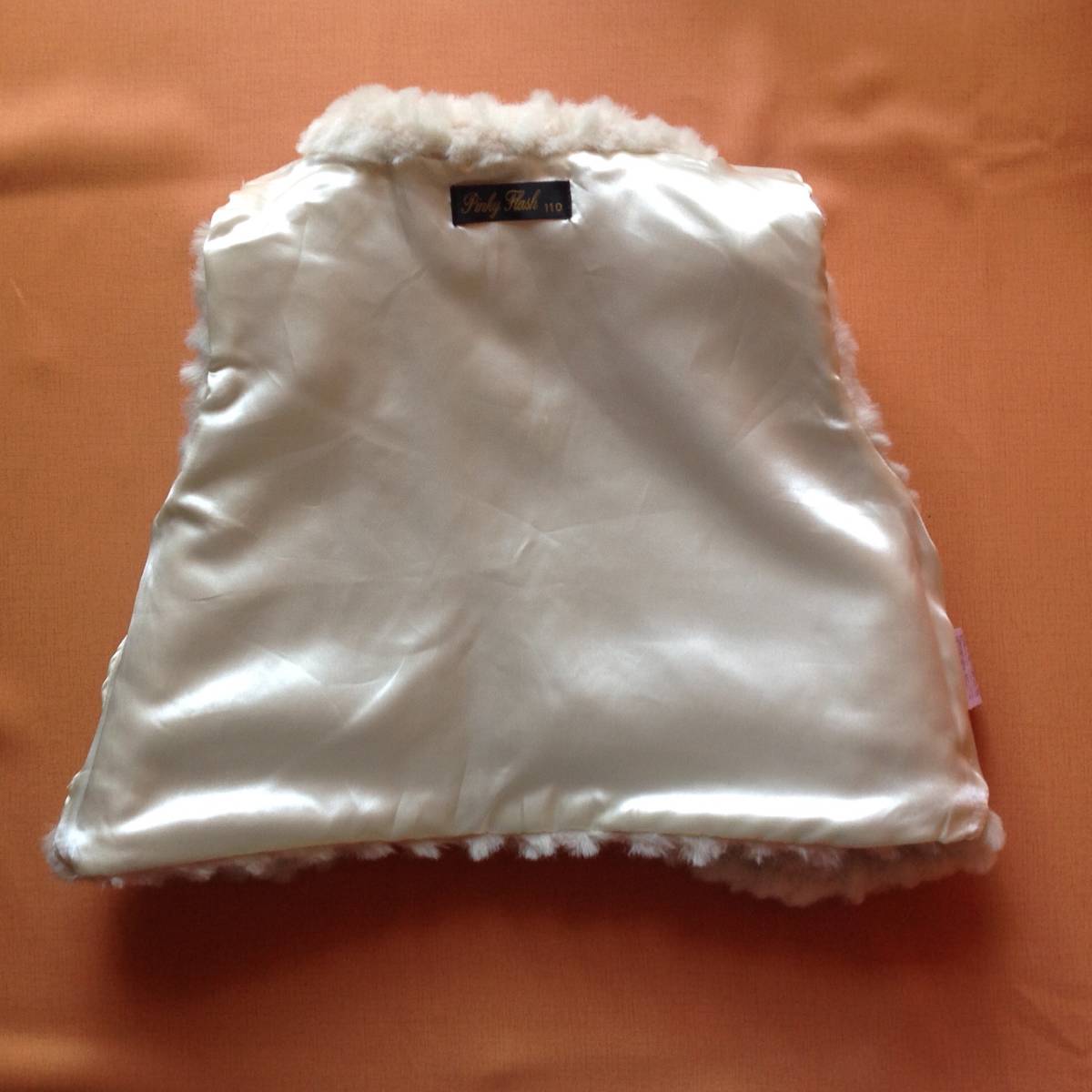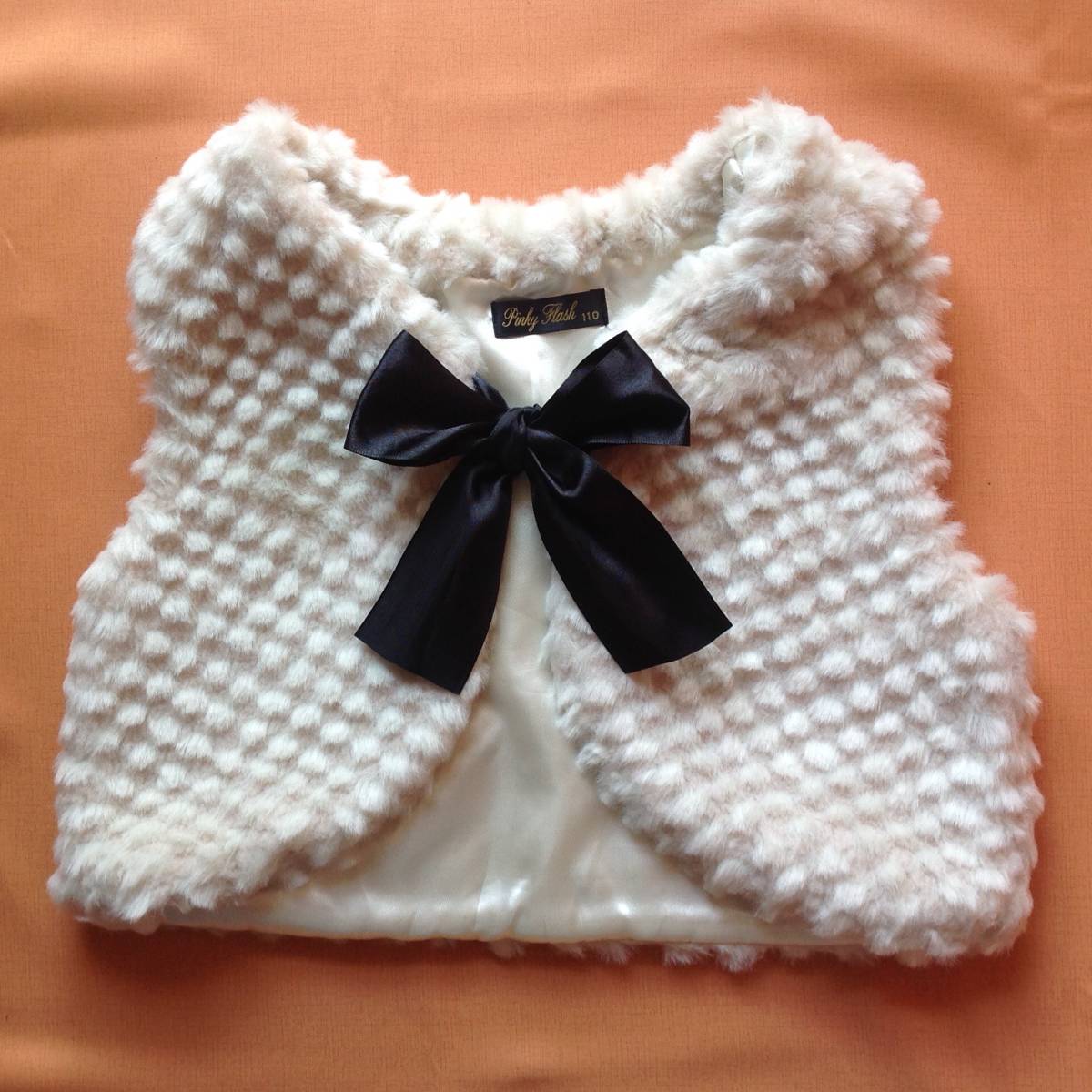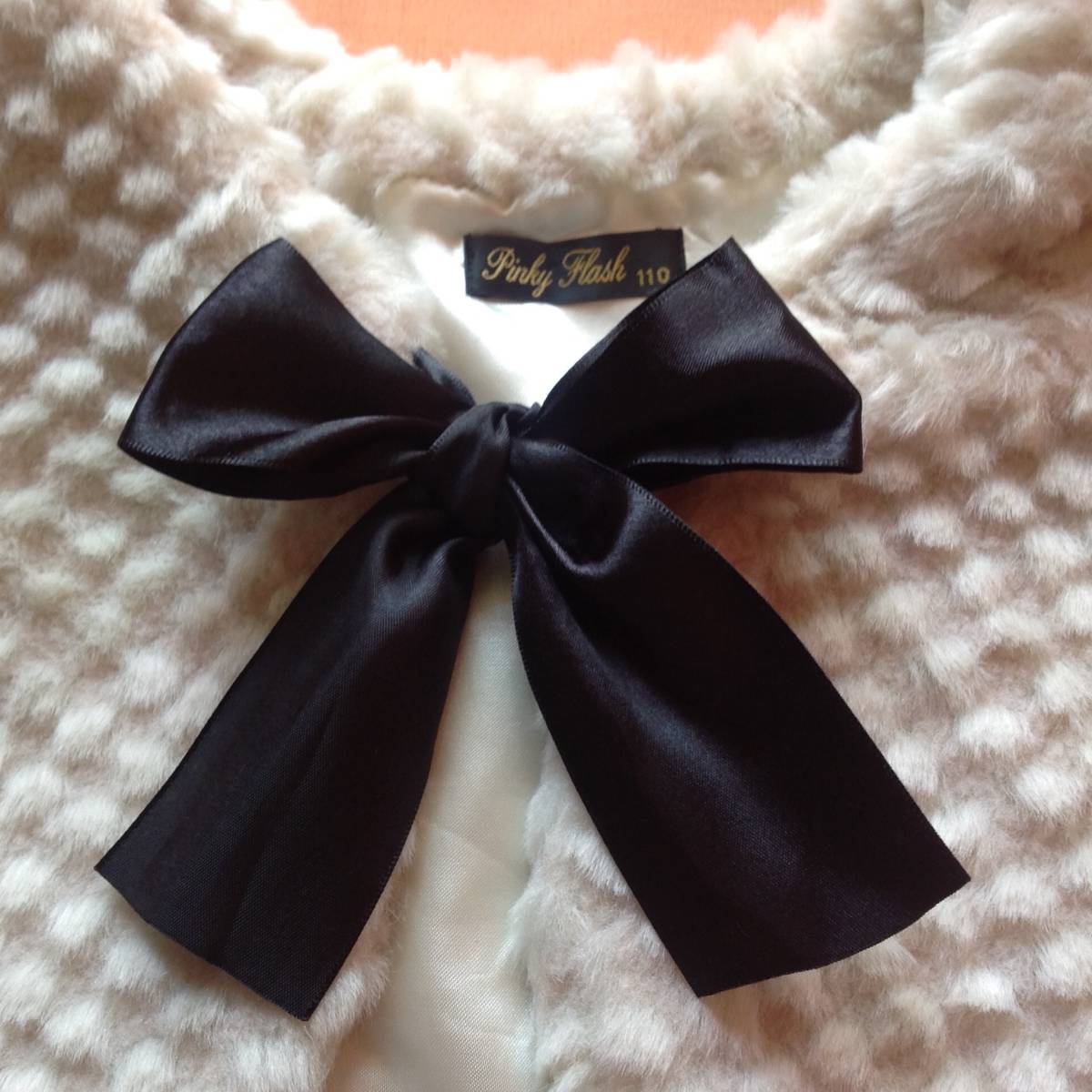 美品 PINKY FLUSH ピンキーフラッシュ ボアベスト 子供服 110cm 七五三 結婚式 お正月 男女兼用 オフホワイト 黒リボン