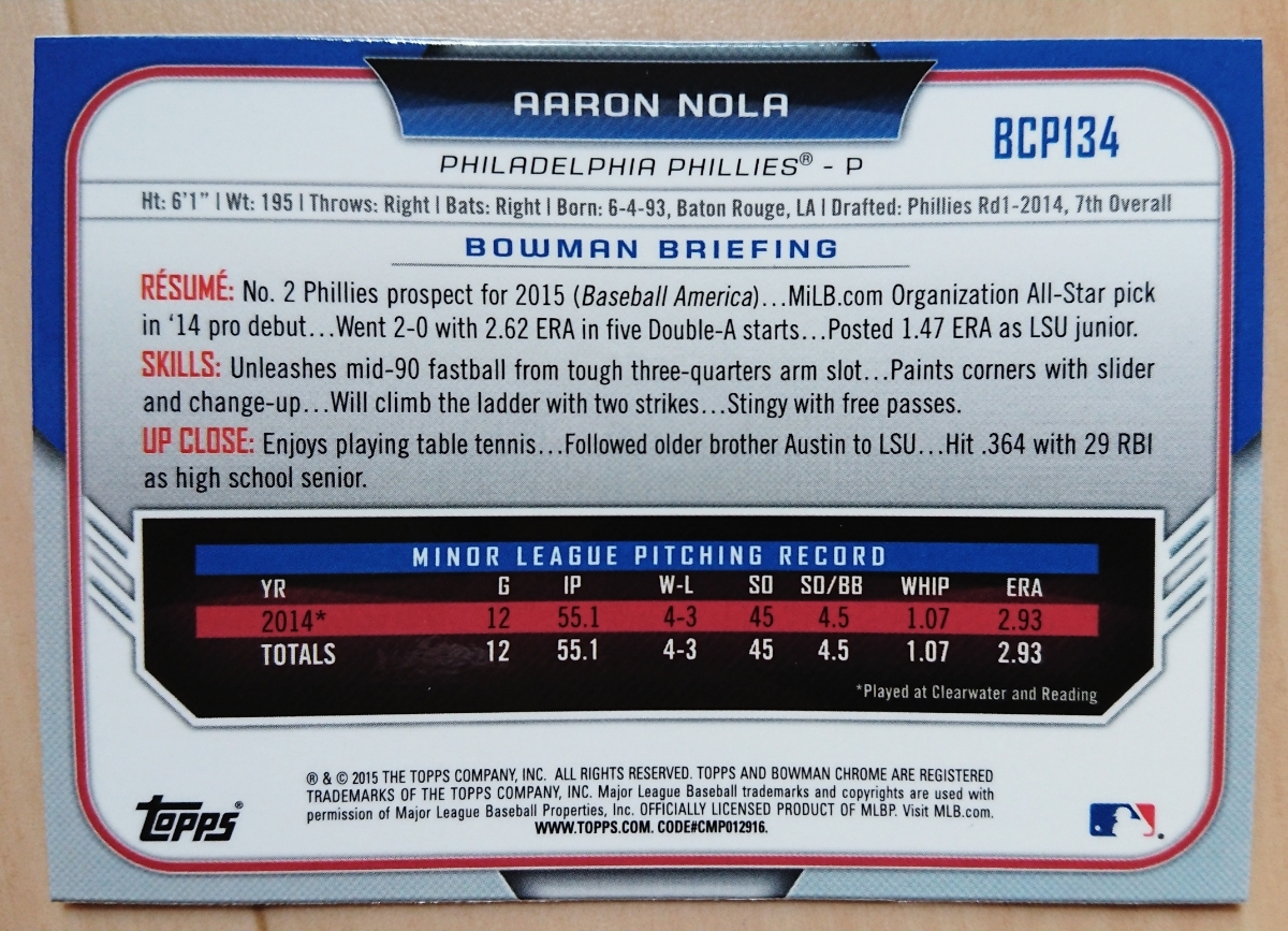 ★★★BOWMAN CHROME 2015 #BCP134★★★