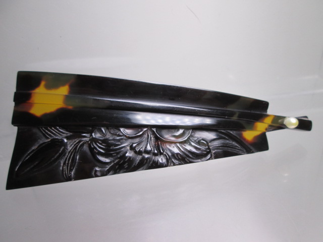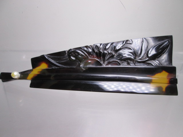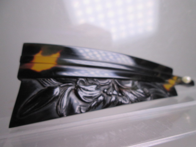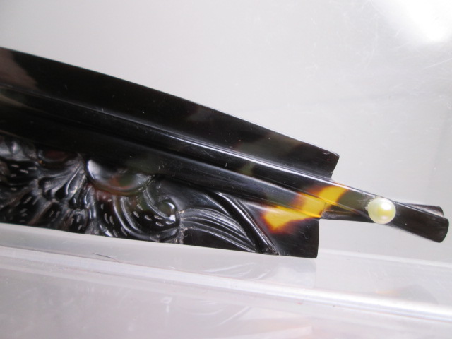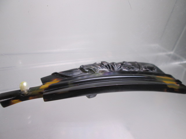 ☆アンティーク・本鼈甲 大きな 10,15cm矢羽根 本真珠飾り 牡丹の花の帯留め