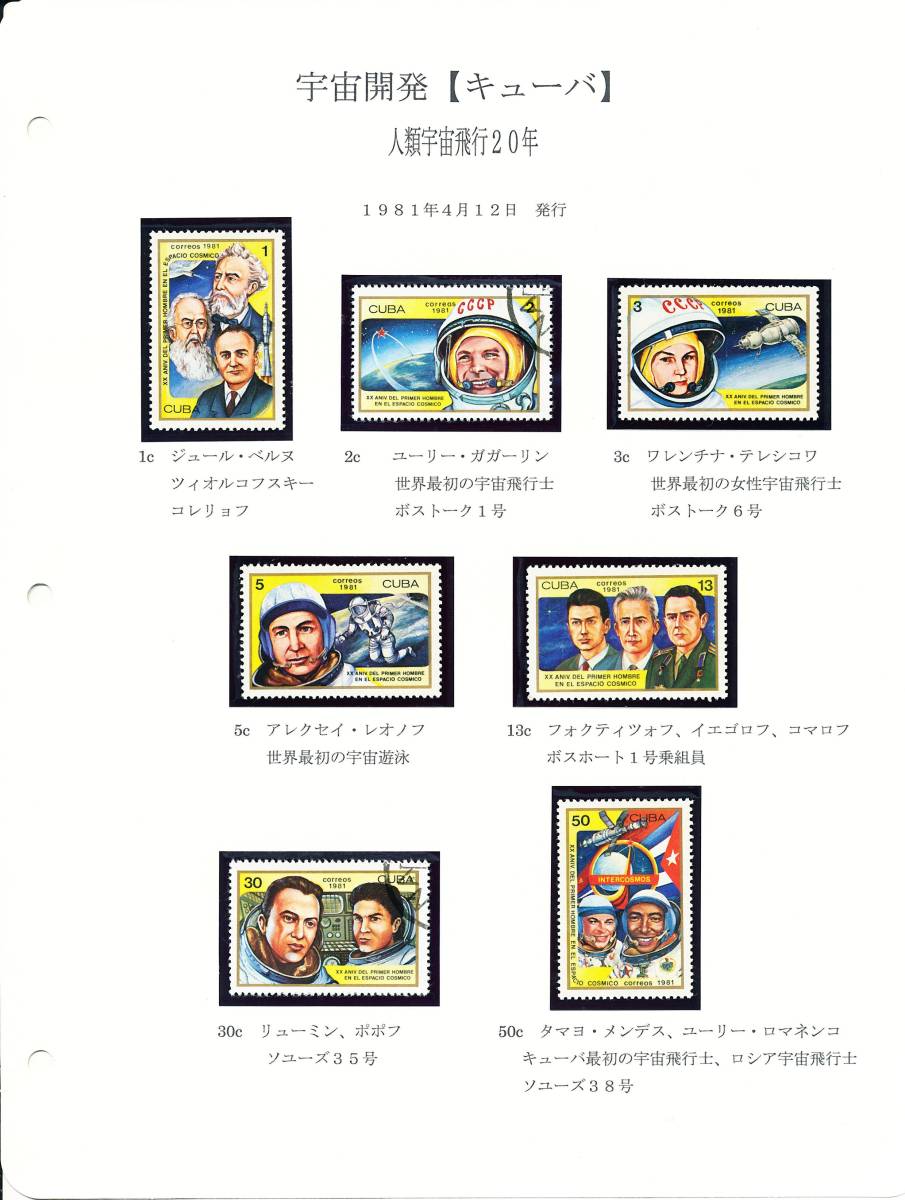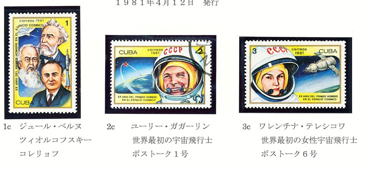 ●1981年4月12日にキューバから発行された消印あり切手7種のリーフです。
