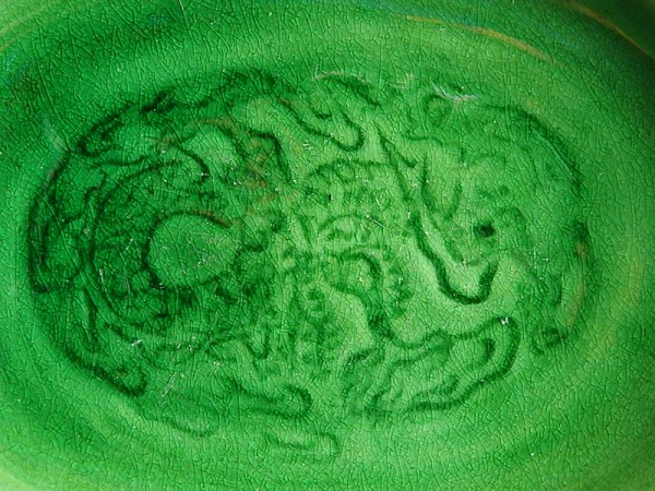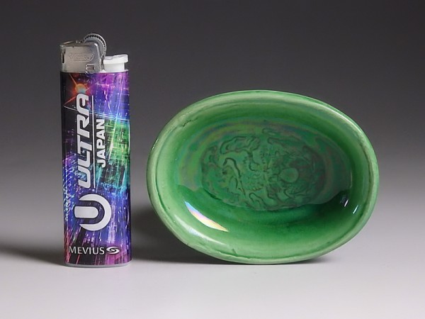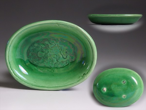 ★華心★ ANi-A532 珉平焼 淡路焼 小判形 龍紋の図 豆皿 希少