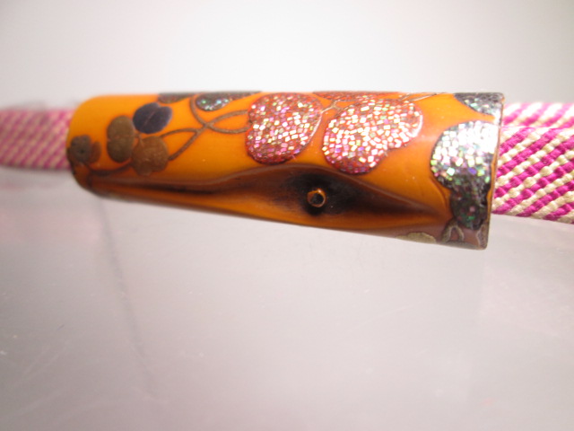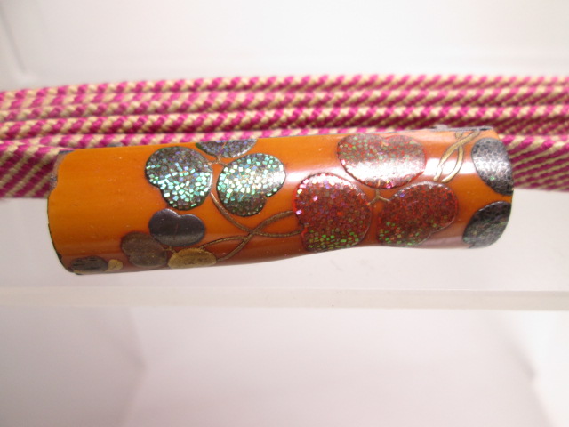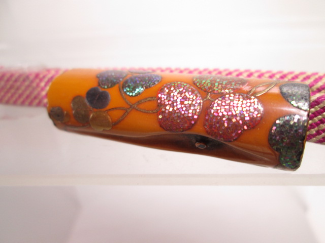【江月】 アンティーク・光親作 乾漆螺鈿細工クロ-バー文「満る太」の帯留め 共箱