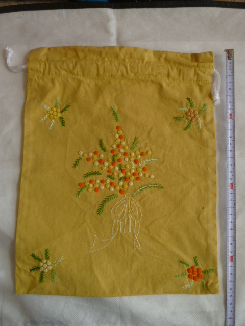 ★★刺しゅう入りきんちゃく袋 (カラシ)F3
