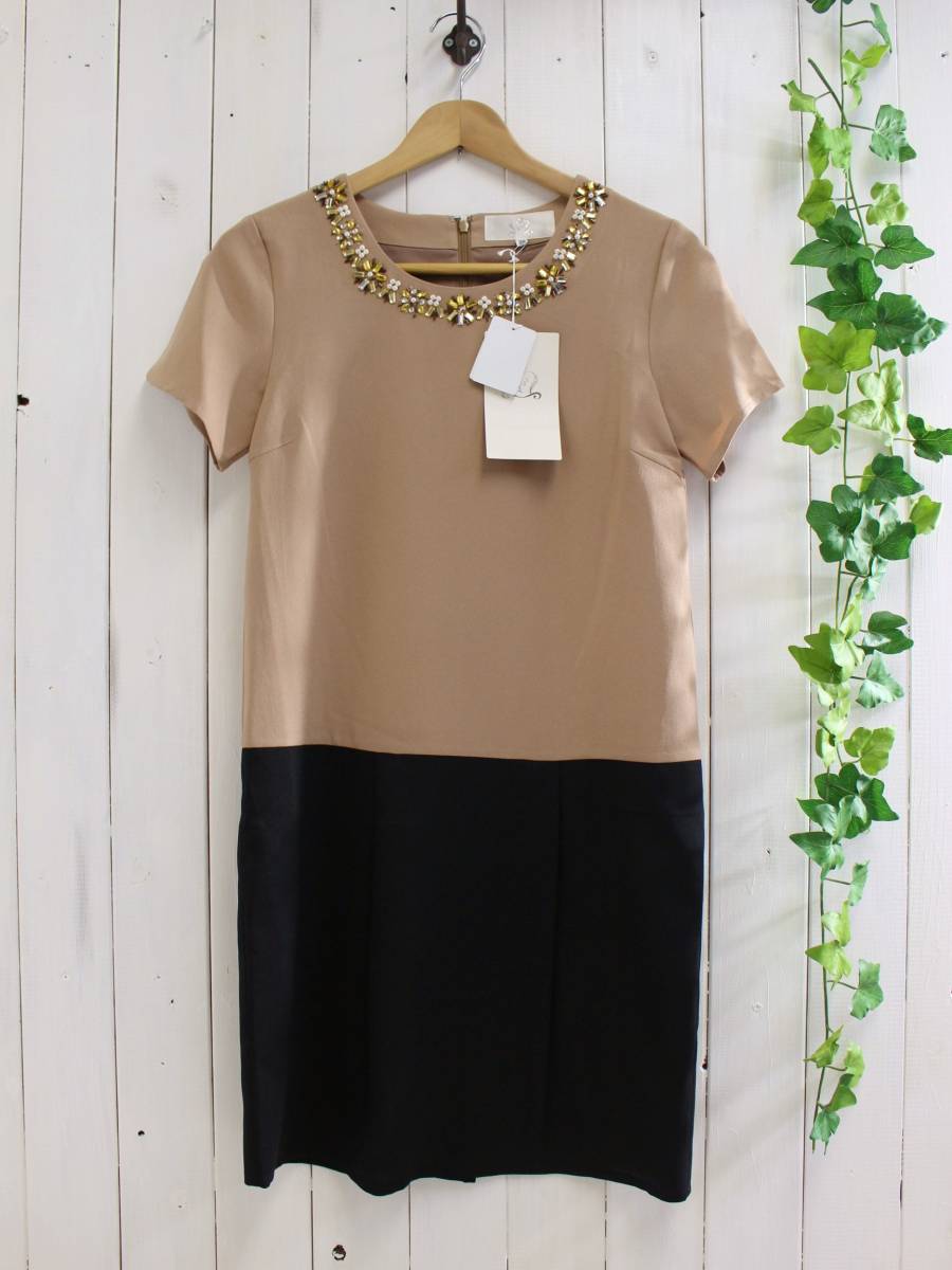 新品*Lu・Lu・Lu*ビジュー付きバイカラーワンピース フォーマル(38)定価18,000円【575-8147】