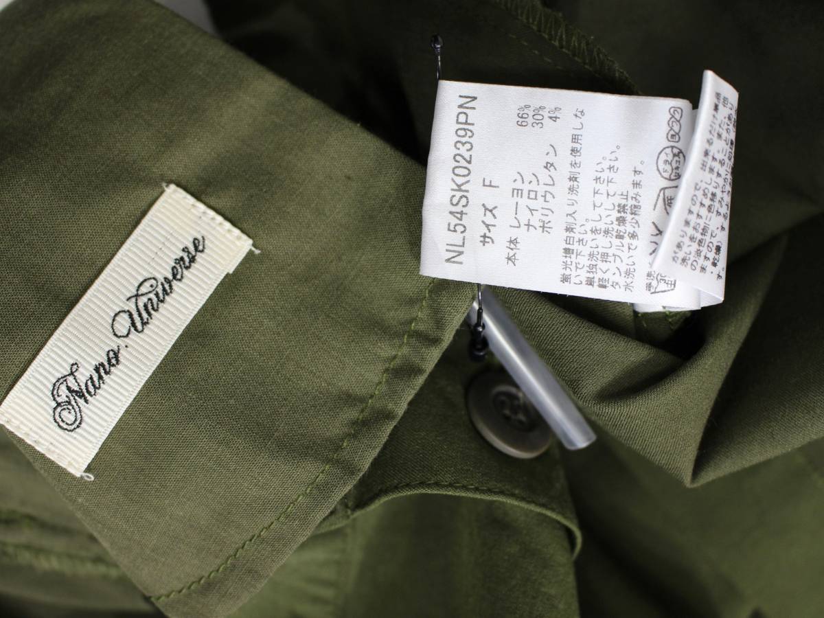 新品*nano universe ナノユニバース*フロントボタン ストレッチスカート(F)カーキ