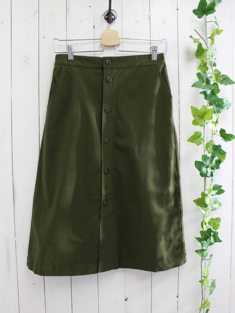 新品*nano universe ナノユニバース*フロントボタン ストレッチスカート(F)カーキ【572-8019】