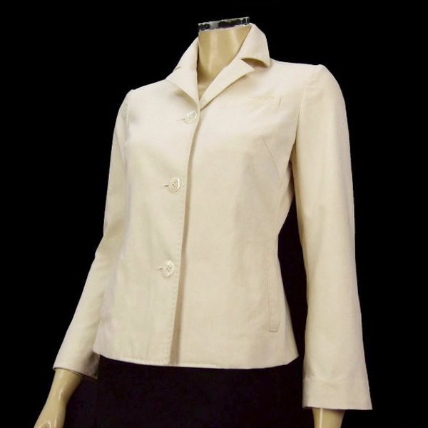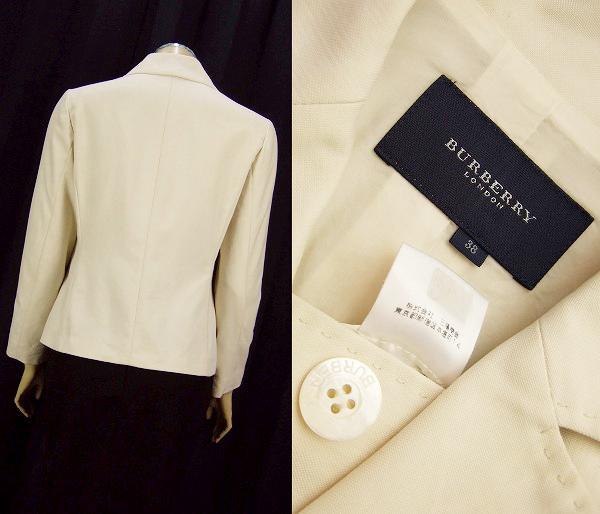 JK)美品*バーバリーロンドン BURBERRY LONDON 三陽商会★極淡ベージュ×ハンドステッチ★ロゴ刻ボタン留★綺麗ジャケット★38(9号 Mサイズ
