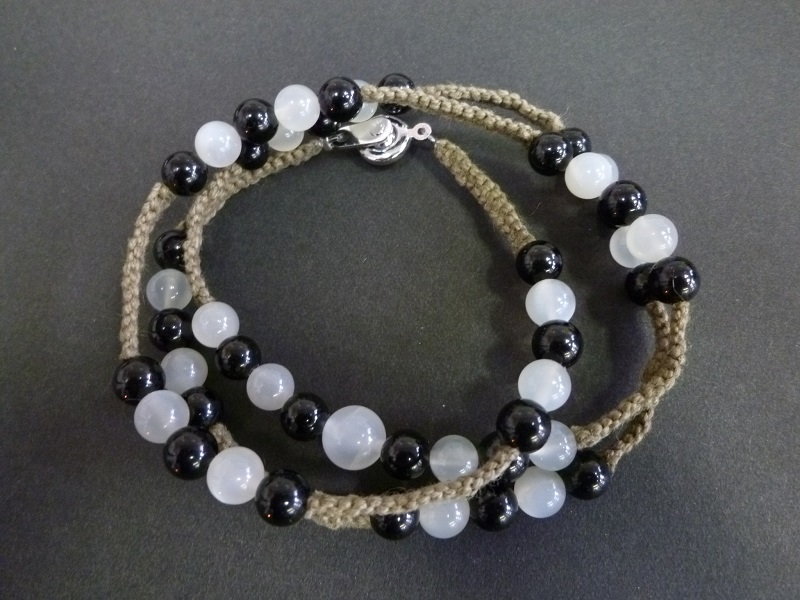 ☆ムーンストーンとオニキスの 高品質の3連ブレスレット商品です。