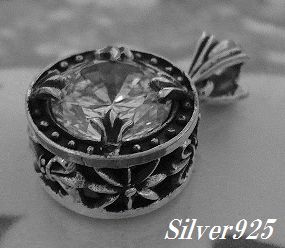 シルバー925銀の百合紋サークル ジルコニア ラウンド ペンダント/シルバーアクセALL50%OFF