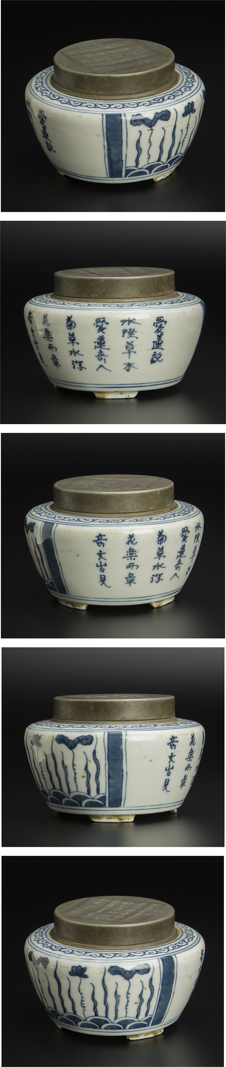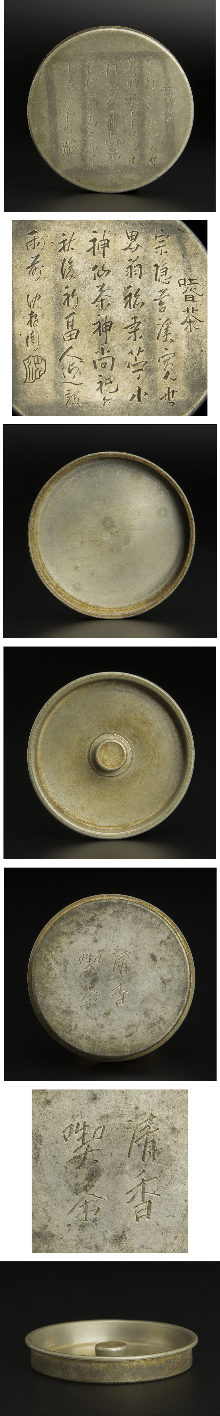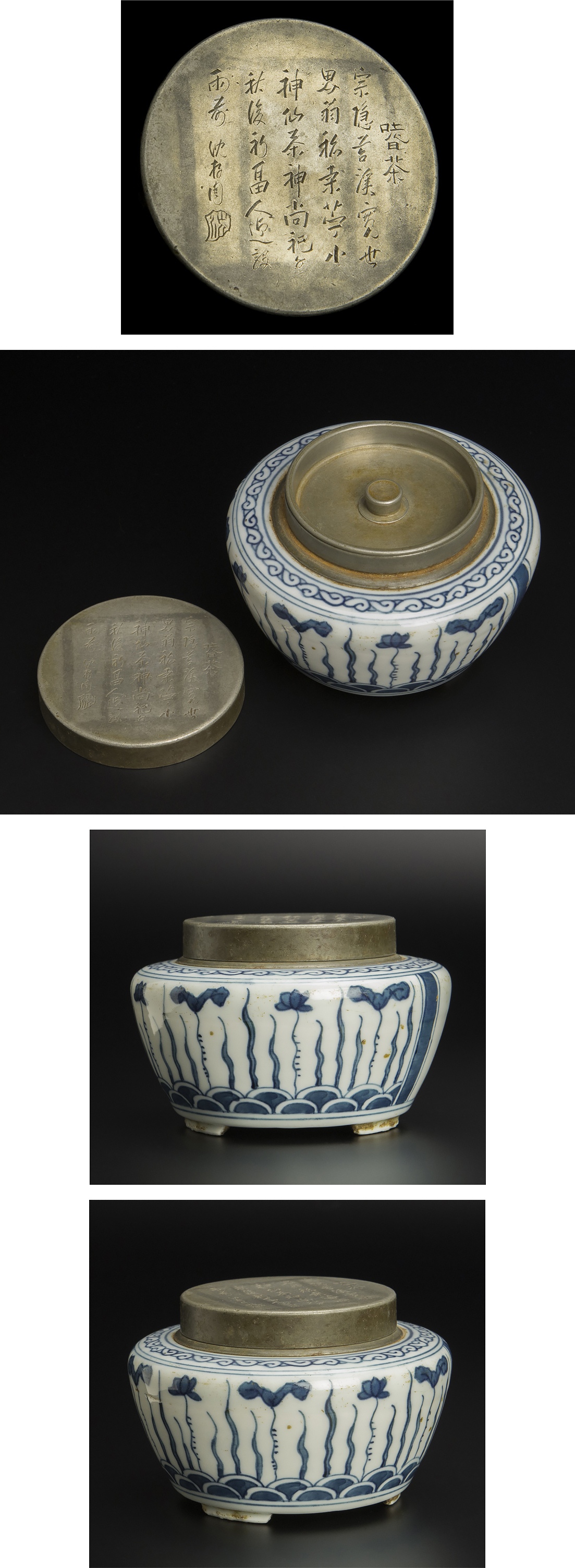 清 沈存周制錫盒 青花茶叶罐 煎茶道具 中国 古美術