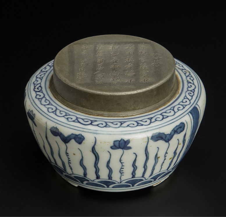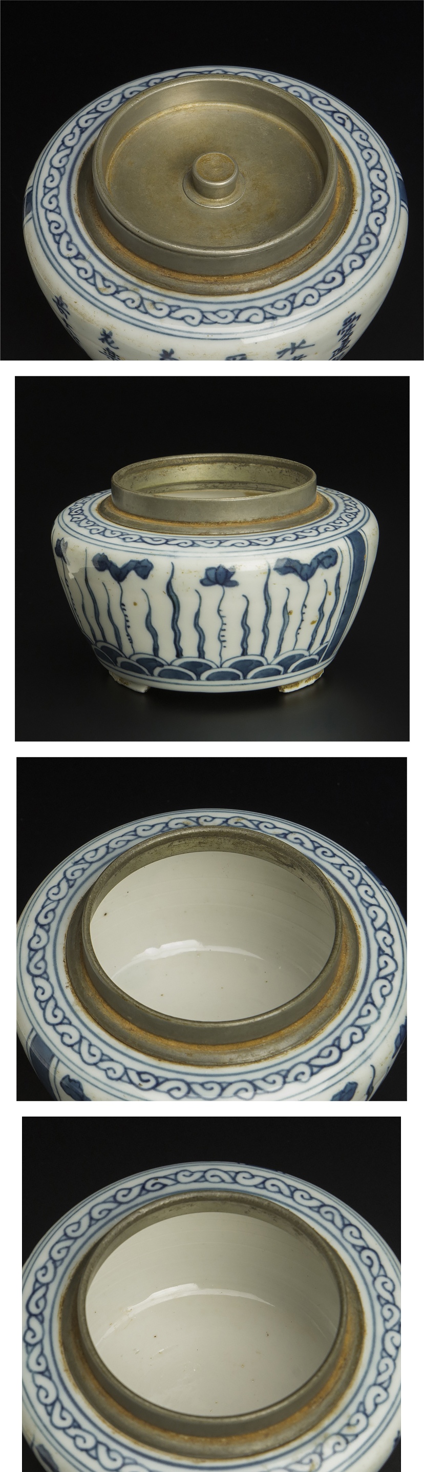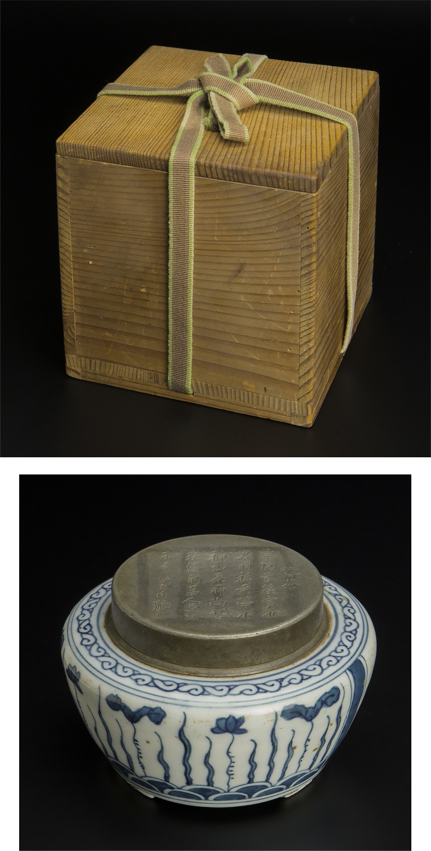 清 沈存周制錫盒 青花茶叶罐 煎茶道具 中国 古美術
