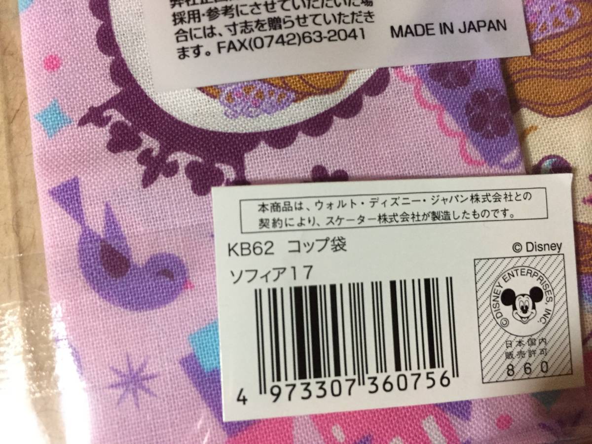ディズニー ソフィア コップ袋★幼稚園/保育園★お弁当/給食/歯磨き