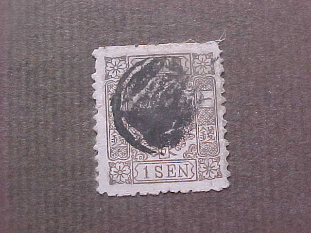 手彫切手 桜洋紙カナ入り 1銭(ロ)(使用済み、1874年)