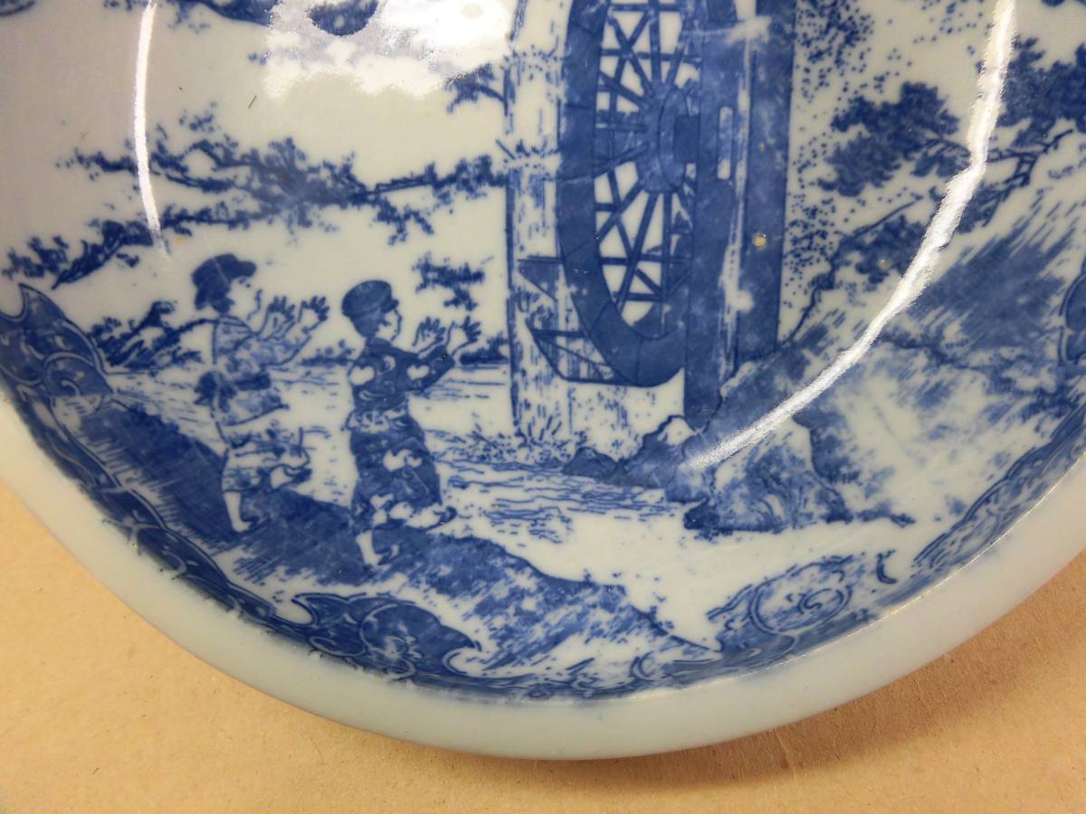 図変り印判の名品 子供と水車図・鉢です。口径20×底9.5×高8センチです。キズはありません。