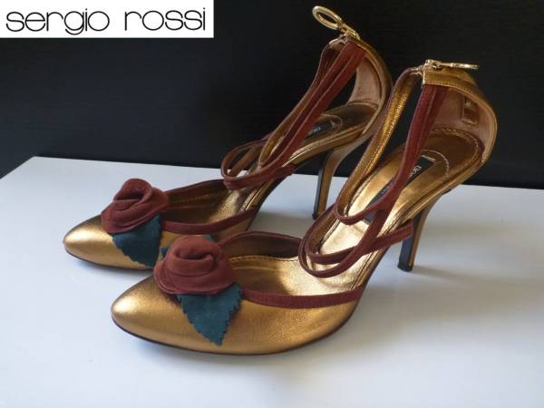6万 セルジオロッシ(sergio rossi) 本革レザー ブロンズ系 サンダル 22.5