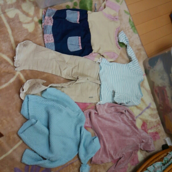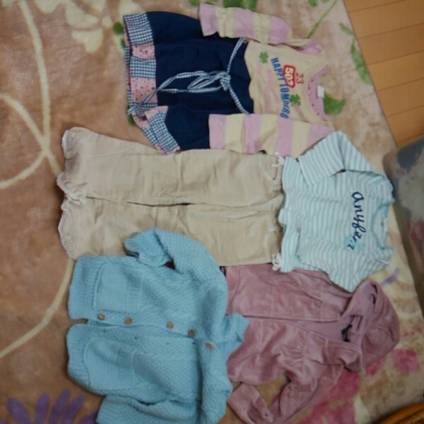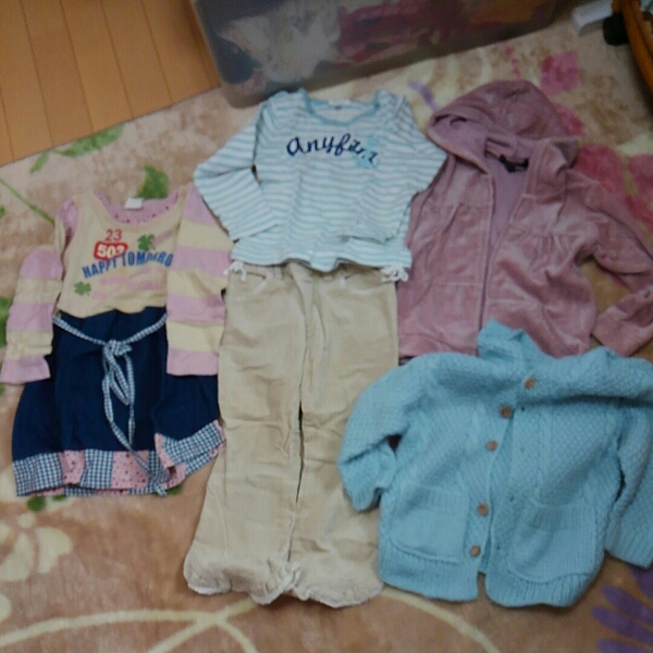 anyFAM長袖アウター1点、手編みカーディガン1点、長ズボン1点、ワンピース1点合計5点セット!