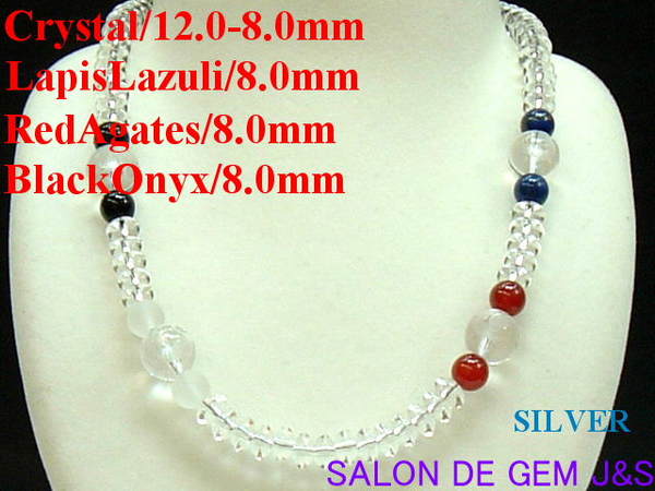【新品】【風水:四神彫刻】【SV:高級天然クリスタル/ラピスラズリ/ブラックオニキス/赤メノウ 2026年開運ネックレス】12.0-8.0mm/44cm