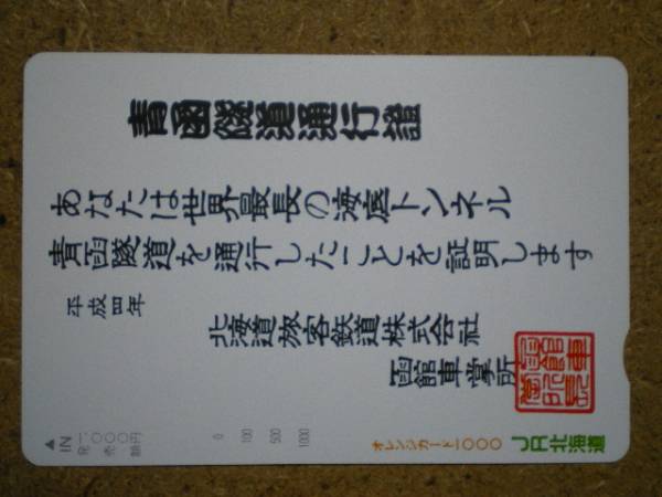 tetu・OC9207 青函隊道通行証 平成4年 函館車掌所 オレカ