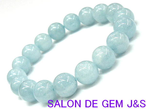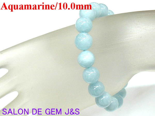 【大粒】【健康/幸福/豊さ】【高級天然アクアマリン 風水・開運ブレスレット】10.0mm/15cm
