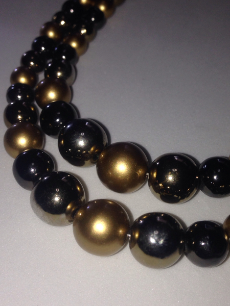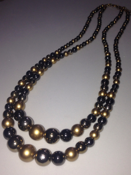 ゴールド、シルバーカラーの豪華な2重のネックレスです、大きな玉は直径10ミリ、ネックレスの長さは42センチです★ 送料は140です