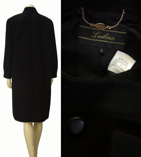 F 美品★Leilian レリアン★艶黒*レディース*贅沢カシミヤ100%生地*極上コート*大きいサイズ*9号表記★15~17号*3L~4L*44~46相当
