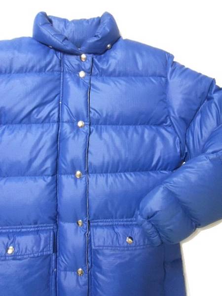 REIのダウンジャケットです。1970年代頃の初期タグモデルとなります。アメリカのアウトドアブランドを語る上で忘れてはいけない程の歴史・人気を持つ老舗コープブランドです。素材はリップストップナイロン/刻印なしのスナップボタン/フロントフラップポケットが2つ(サイドにハンドウォーマーポケット)/着丈が長いデザインで、インサイドウエストにドローコードが付き、フロントZIPは上下開閉が可能なダブルZIPになります。近年ではなかなか出てこない希少な1着かと思います。なおレディース物となりますが、メンズS程度のサイズ感です。