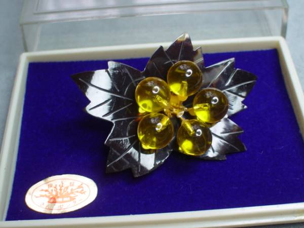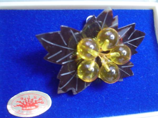 珍品 アンティーク サンゴ製 葉のデザイン ブローチ ケース付 未使用品