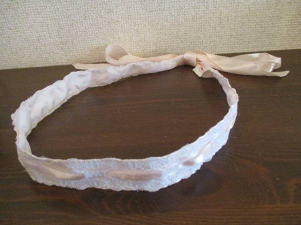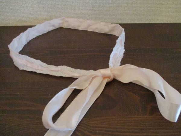 商品紹介 | 薄ピンクカラーにレース使いがかわいいです。 結んで取り付けるタイプです。 |
