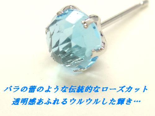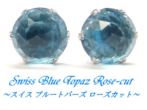 K10WG スイスブルートパーズ 5mm ローズカット ピアス 11月誕生石 天然石 ジュエリー ホワイトゴールド 高品質 箱付き