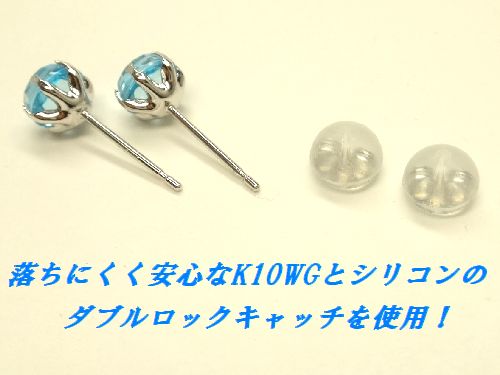 キャッチは、ホワイトゴールドとシリコンのダブルキャッチになっているので、落ちにくく安心してお使い頂けます。