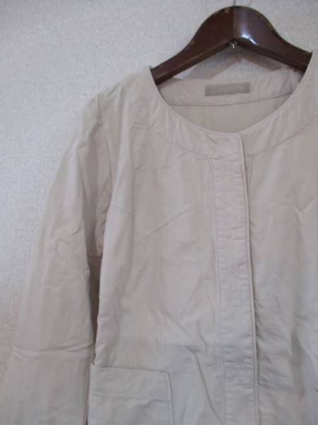 | 商品紹介 | カジュアルなコットン素材のノーカラーブルゾンです。 ステッチがデザインのポイントになっています。 表地はシャツのような素材で、裏地は少し起毛感のあるカットソーのような素材です。 色はベージュです。 《素材》 表地・裏地:コットン100% |