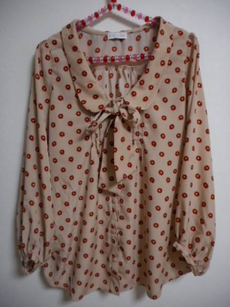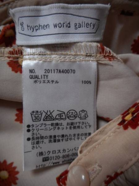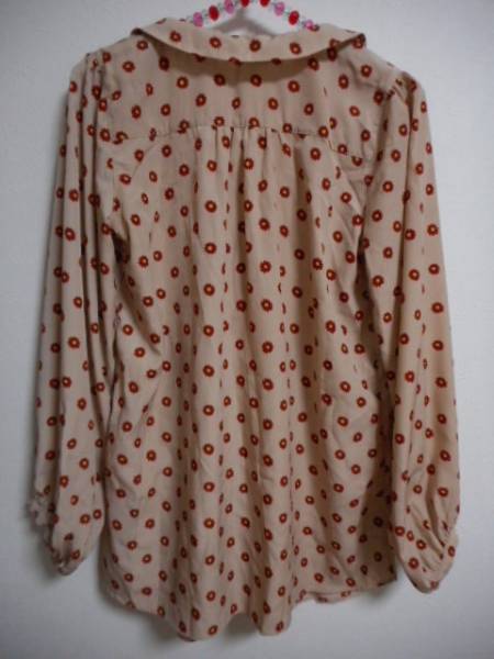 | 【ブランド・形態】 E hyphen world galleryイーハイフンです。 【カラー】 ベージュ地にボルドーの花柄です。 掲載の実物写真はPC環境や光の加減により実物と色合いが若干異なる場合があります。 【特徴】【状態】 ピーターパンカラーのフロント部分にリボンタイがついた女性らしいチュニックです。 りぼんの裏、フロントボタンで全開閉チュニックブラウスです。 袖は前身頃の方が少し短い(約5cm)デザインです。 詳細は写真参照でお願いします。 少々使用感は有りますが、目立つようなシミ・ヨゴレ、大きなダメージなどはないです。 問題なくご愛用いただける状態かと思います 光の加減で、白っぽく写った写真も有りますが、濃い写真が近い色合いです。 【素材】 ポリエステル100%です。 その他写真参照でお願いします。 【記載サイズ】 サイズは無表示となっておりますが実寸も参考にして下さい。 Mくらいと思われます。 【実寸サイズ】{平置き採寸} 縮みや伸びが生じている場合がありますので実寸サイズをご参照ください。 着丈 : 約68cm (背面襟下から裾まで) 肩幅 : 約33cm (両肩を直線で結んだ線) 身幅 : 約45cm (両脇を直線で結んだ線) 袖丈 : 約55-59cm (肩縫い目から袖先まで ) 尚、素人採寸です多少の誤差はご了承下さい。 裄丈 : 約---cm (後衿ぐり中央から肩先までを水平に計った長さと、 肩先から袖口までを足した値 ) | |||