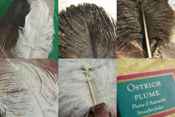 ▼海外製のオーストリッチ(ダチョウ)の羽根2種とペン軸2種、ペン先8種をセットにした羽根ペン(羽ペン)セット 未使用です。