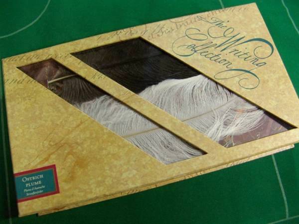 ▼アンティーク調 オーストリッチ/ダチョウの羽根ペン 羽ペン セット 未使用・箱入り!!!▼