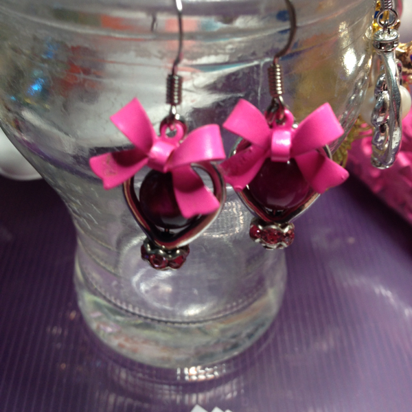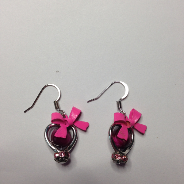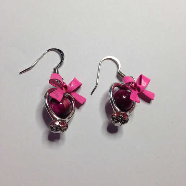 8ミリのタイガーアイ使用しております.ハートに納めて可愛いピンクリボン付けてみました。フックは錆ない真鍮です