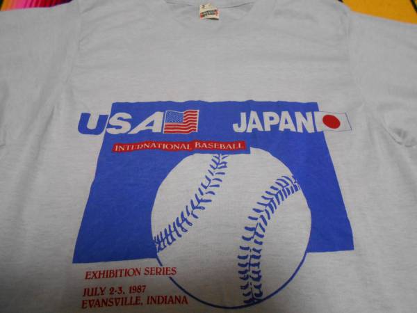 1987年 7月 2~3 にアメリカのインディアナで開催された 「INTERNATIONAL BASEBALL」 EXHIBITIONAL SERIES 日本 VS アメリカ イベント ノベルティー Tシャツ ビンテージ オリジナル