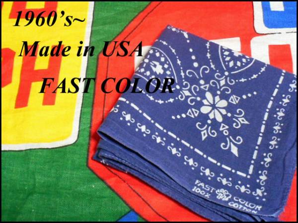 シーズンを問わずお使い頂ける1960年代頃のFAST COLOR (ファーストカラー)ビンテージコットンプリントバンダナいかがでしょうか???